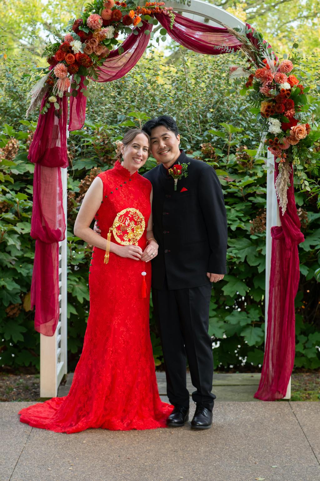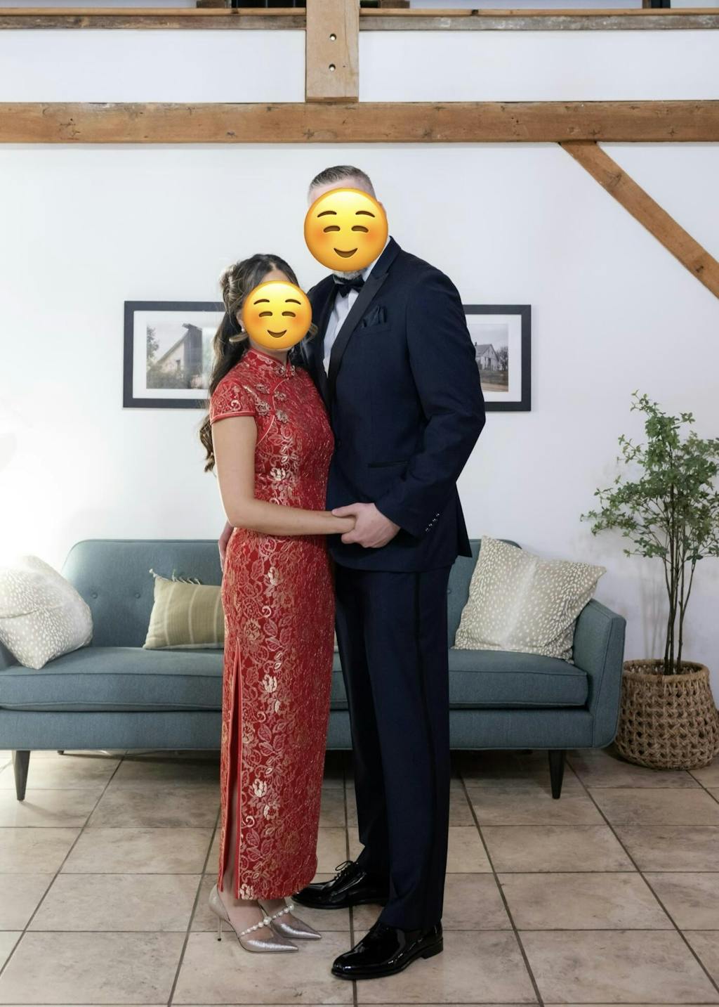 I love how this dress came out! Custom ordered it with red fabric, jade beads, a train, and a sheer back and it looked beautiful! Communication was great during the entire process. I had so many compliments on the dress from our guests and it fit our multicultural wedding perfectly.