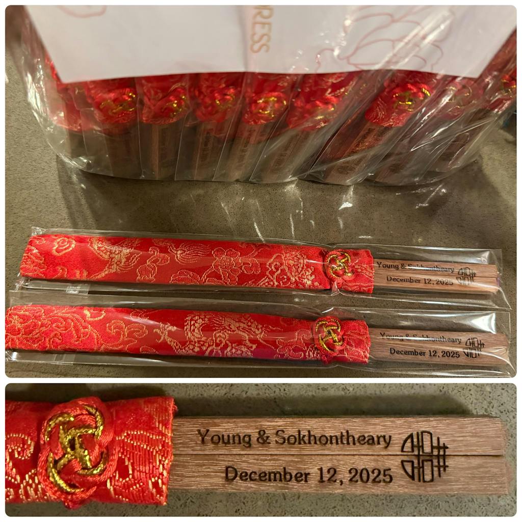 I’m absolutely in love with the custom chopsticks we ordered for our wedding! They’re even better than I imagined. Thank you so much! -xxx-